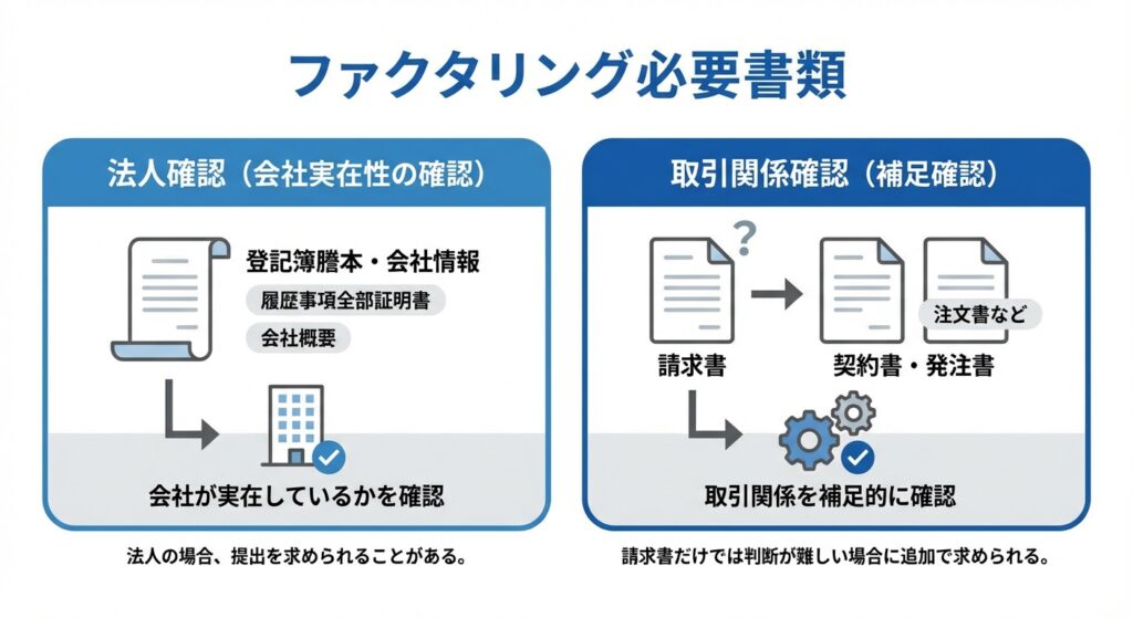 特に、業種が一般的でない場合や、はじめてファクタリングを利用する場合に確認されることがあります。
