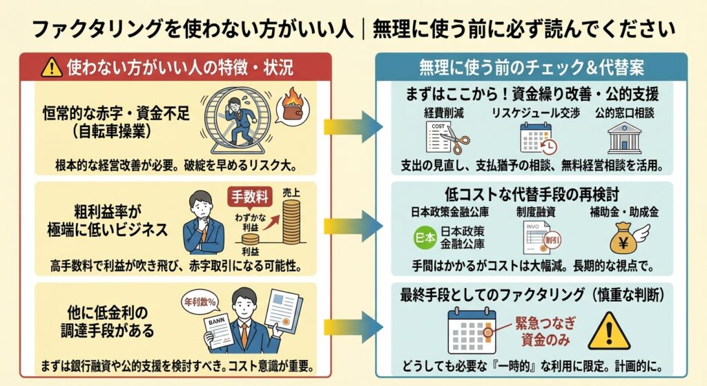 ファクタリングを使わない方がいい人|無理に使う前に必ず読んでください